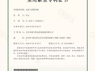 實(shí)用新型專(zhuān)利證書(shū)《水果入框緩沖器》