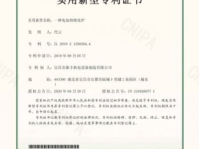 實(shí)用新型專(zhuān)利證書(shū)《一種電加熱吸化爐》